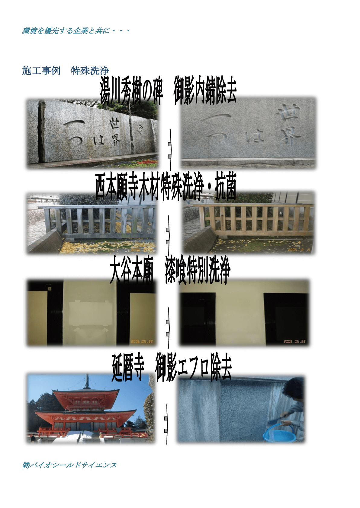 - 光触媒・特殊洗浄・各種コート・抗菌・水処理(分散と凝集)等の施工、及び研究開発